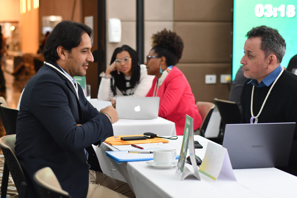 Junto al DNP y a través del proyecto “Apoyo a la revisión e implementación de los Objetivos de Desarrollo Sostenible (SDG-RI)”, financiado por el Ministerio de Ambiente de Alemania – BMUKN e implementado por la GIZ se llevó a cabo la Primera Rueda de Relacionamiento en Bioeconomía el 9 de octubre en Bogotá. A través de 127 reuniones bilaterales, 28 financiadores y 27 proyectos se conectaron para identificar posibles apoyos y oportunidades de financiación. Esta rueda tuvo el objetivo de optimizar las oportunidades de conexión y acelerar el acceso al financiamiento para el desarrollo de la bioeconomía en Colombia e identificó 89 oportunidades de financiamiento con un valor potencial de $494.850 millones de pesos colombianos (aprox. USD $115 millones).