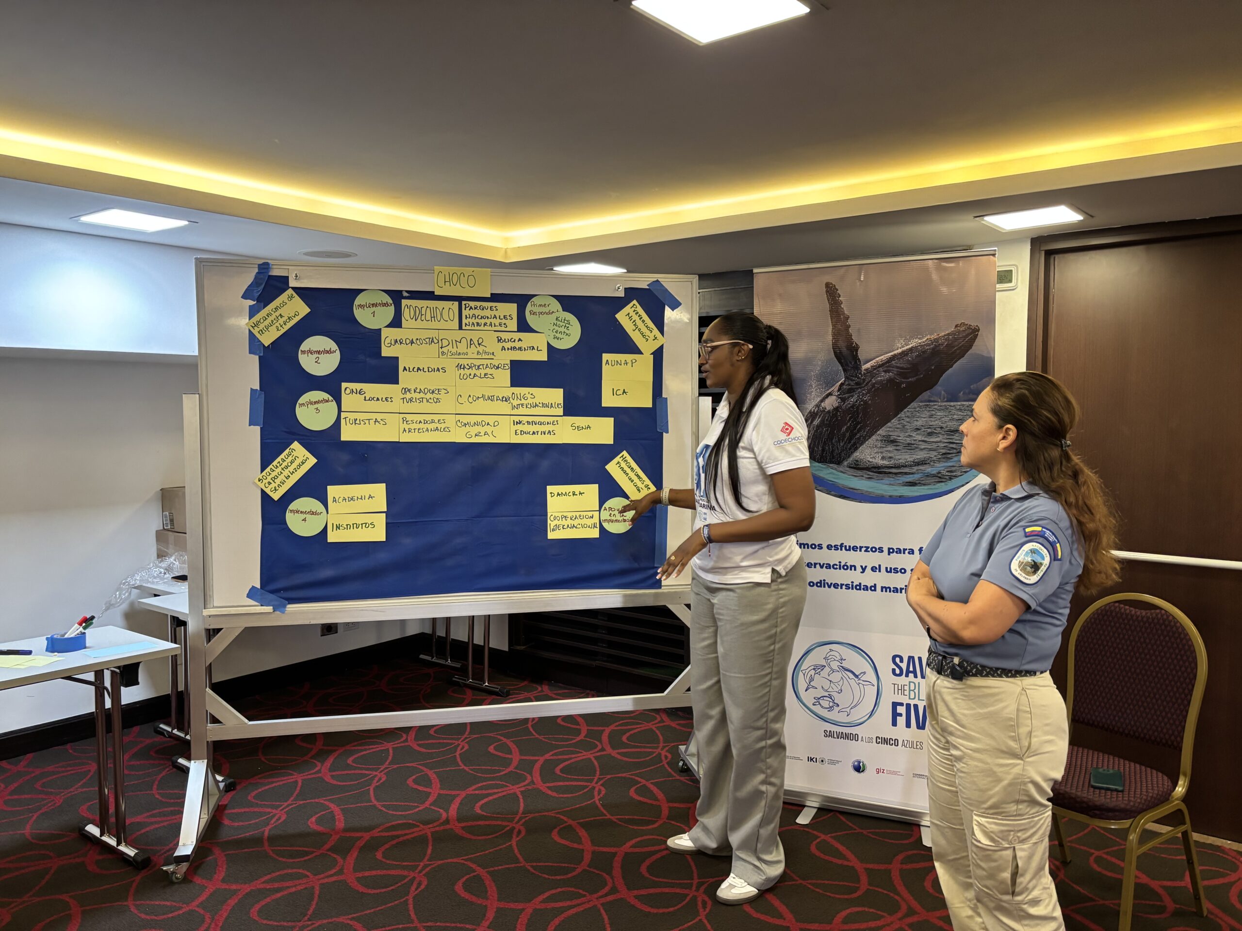 Como parte de estas acciones, se han llevado a cabo espacios de fortalecimiento, discusión y articulación donde han participado la Dirección de Asuntos Marinos, Costeros y Recursos Acuáticos del Ministerio de Ambiente, Corporaciones Autónomas Regionales del Pacífico (CODECHOCO, CVC, CRC, CORPONARIÑO), Parques Nacionales Naturales de Colombia (PNN Utría, PNN Uramba Bahía Málaga, PNN Gorgona, DNMI Cabo Manglares) y Capitanías de Puerto del Pacífico colombiano (CP Buenaventura, CP Guapi, CP Tumaco) en representación de autoridades ambientales y autoridades marítimas.